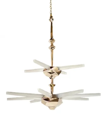 The REVO CHANDELIER, M. Shively’s newest lighting creation, revolutionizes the rules of geometry and form that have long been part of basic lighting design. Taking inspiration from antique chandeliers, he modifies this classic form by interpreting curves and ornate ornamentation as straight lines and facets of a gem, obscuring the lines between classic form and progressive contemporary style. In addition, the light origin was placed to emulate rays growing outward, projecting its inner beauty.